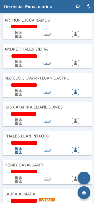 Implementada também a função para que, caso o funcionário contenha informação cadastrada, o ícone correspondente fique em azul, contendo destaque. E para os funcionários que não contém, o ícone ficará na cor cinza, conforme a imagem abaixo: