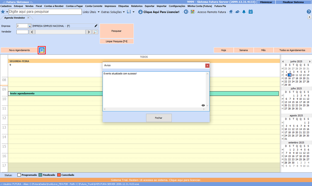 - Minha Agenda (ícone do “Calendário” no tema Dashboard ou tema clássico).