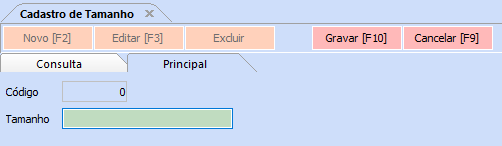 Como funciona: O Cadastro de Tamanho é utilizado para cadastrar um determinado tamanho para ser indicado posteriormente no Cadastro de Produtos ou Grade de Produtos.