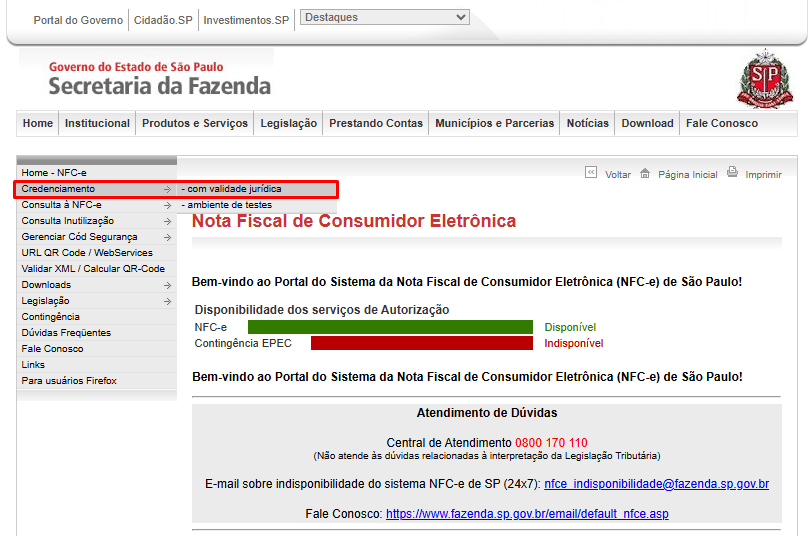 Acesse novamente o portal: http://www.nfce.fazenda.sp.gov.br/NFCePortal/