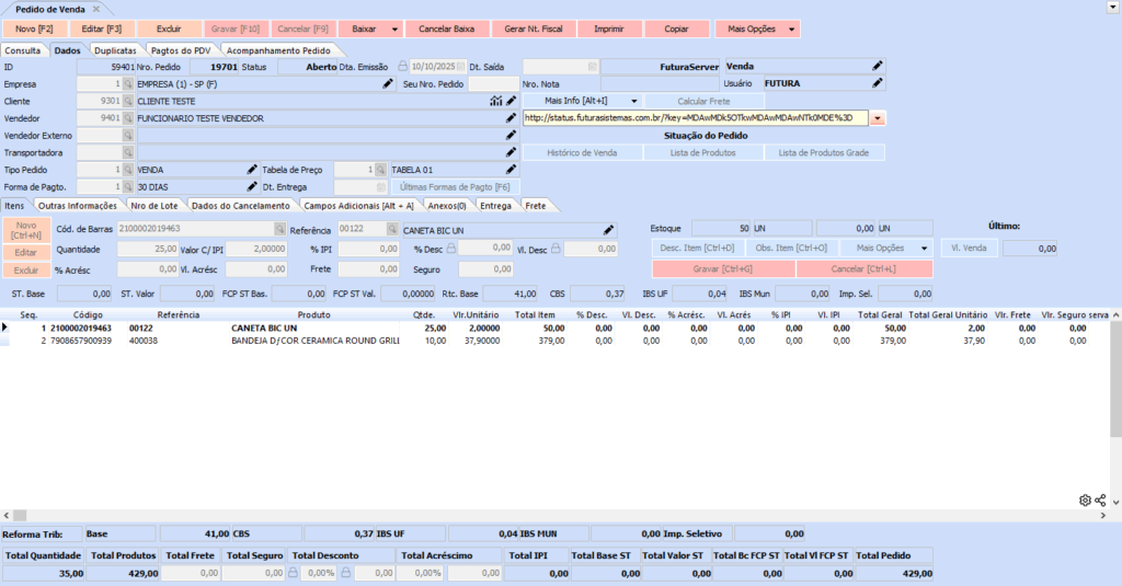 Total: Neste campo será informado o valor total do pedido selecionado.