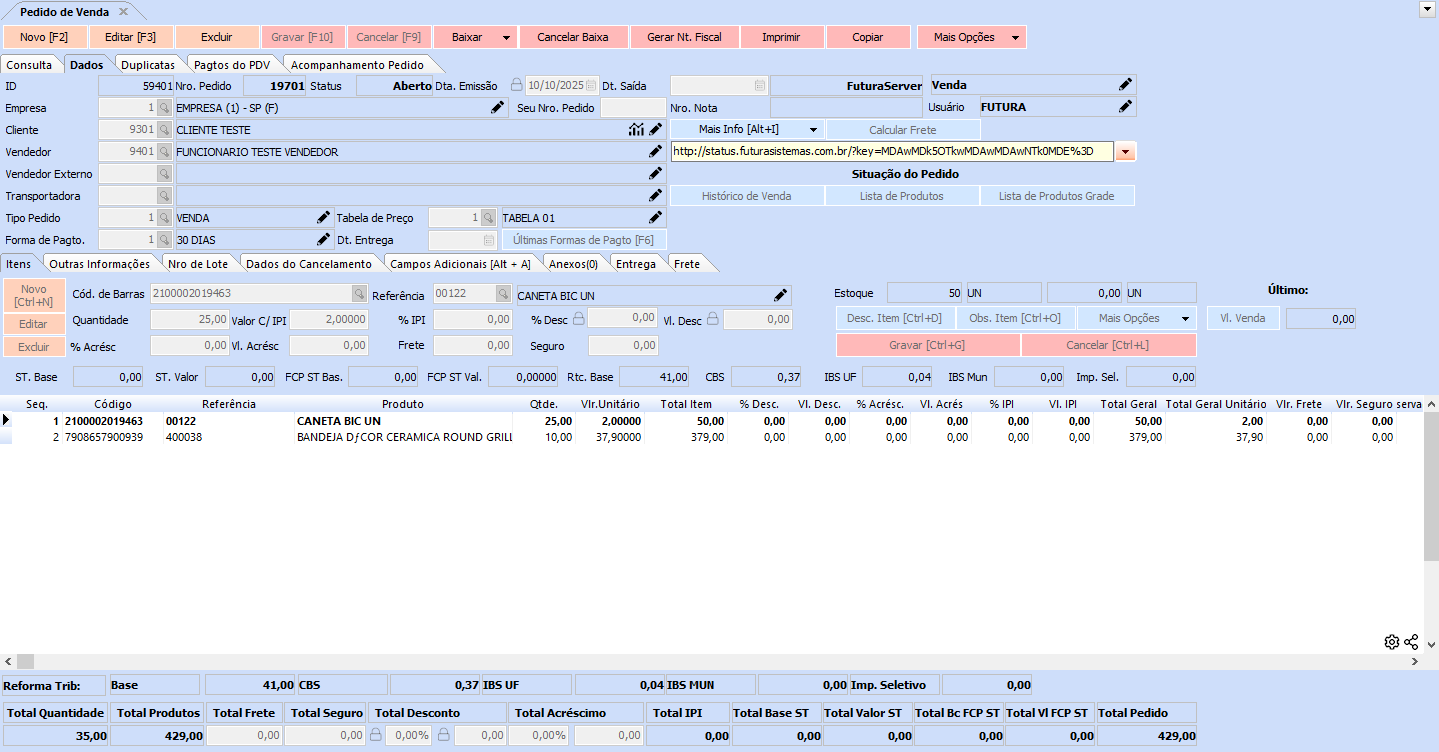 Total: Neste campo será informado o valor total do pedido selecionado.