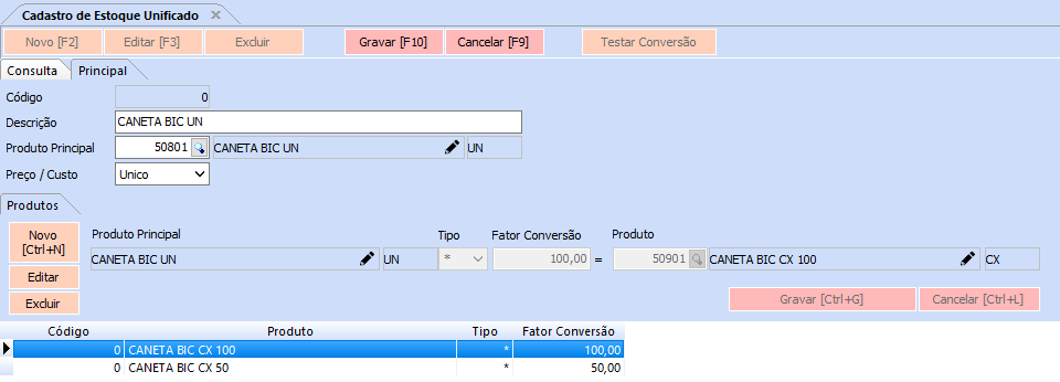 Obs: Lembrando que sempre que o estoque do produto principal for alterado os demais produtos unificados já terão sua conversão atualizadas também.
