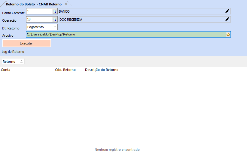 Arquivo: Indique o arquivo retorno recebido do banco;