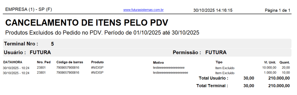Relatório – Cancelamento de itens pelo PDV – FS191