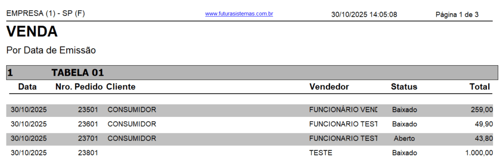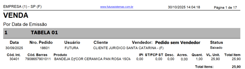 Relatório de Venda por Tabela de Preço (Futura Server) – FS189