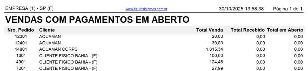 Relatório de Vendas com Pagamentos em Aberto – FS188