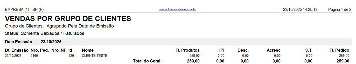 Exibe a listagem de vendas, podendo ser agrupado tanto por Data quanto por Grupos de Clientes.