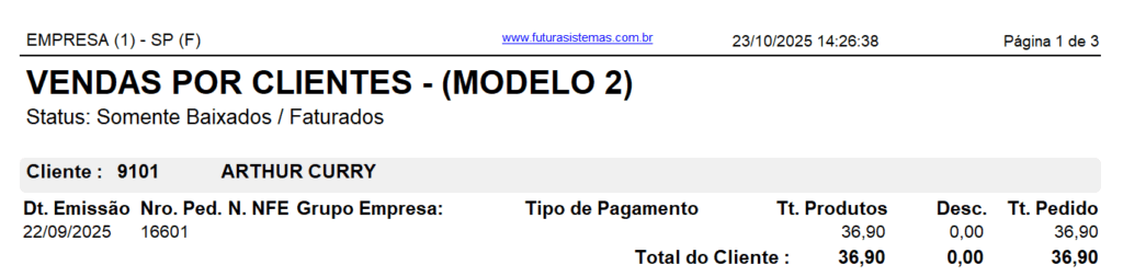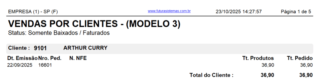 Lista os Pedidos de Venda efetuados agrupados por Cliente assim como nos modelos anteriores, porém de forma resumida.