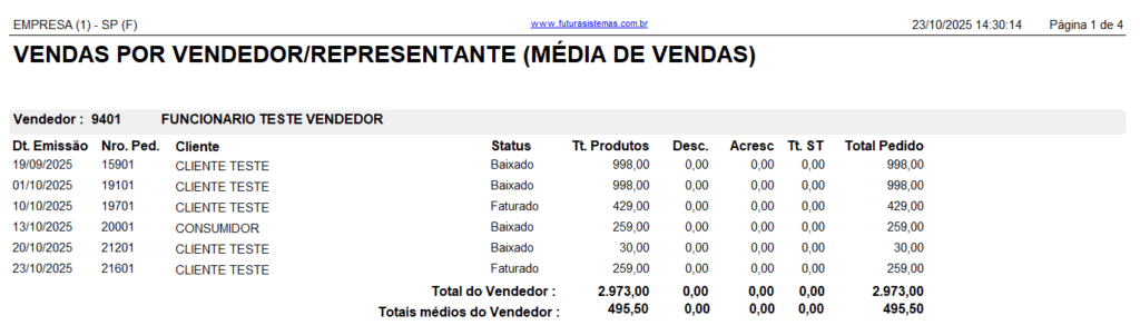 Modelo: Por Vendedor/Representante (Média de Vendas)