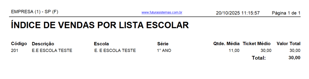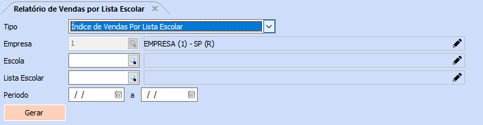 Modelo: Índice de Vendas Por Lista Escolar