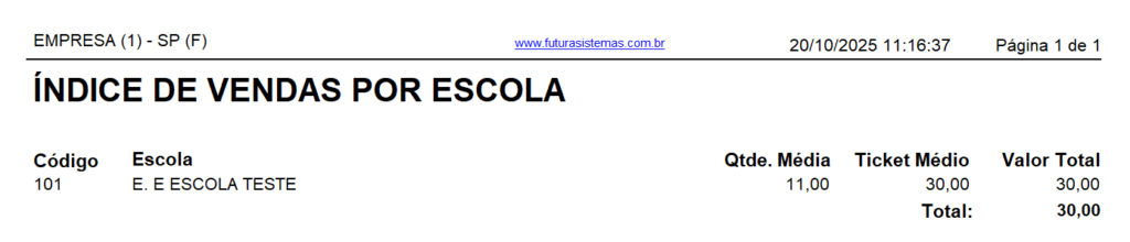 Modelo: Índice de Vendas Por Escola