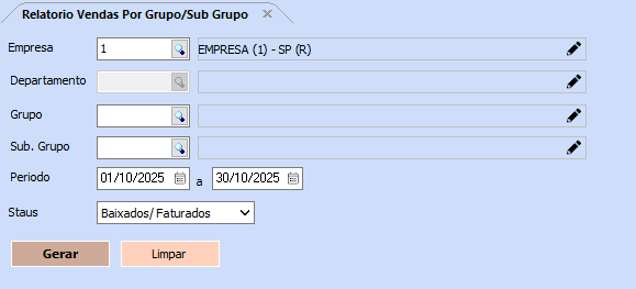 Relatório Vendas por Grupo/Sub Grupo – FS178