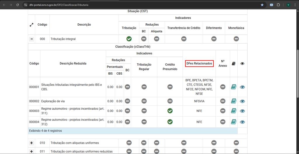 Os CSTs e o cClassTrib possuem compatibilidade com determinados modelos de documento.